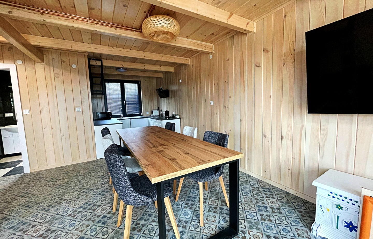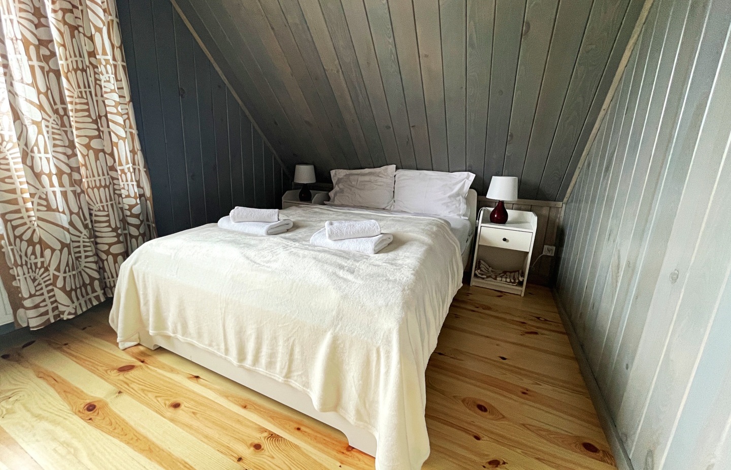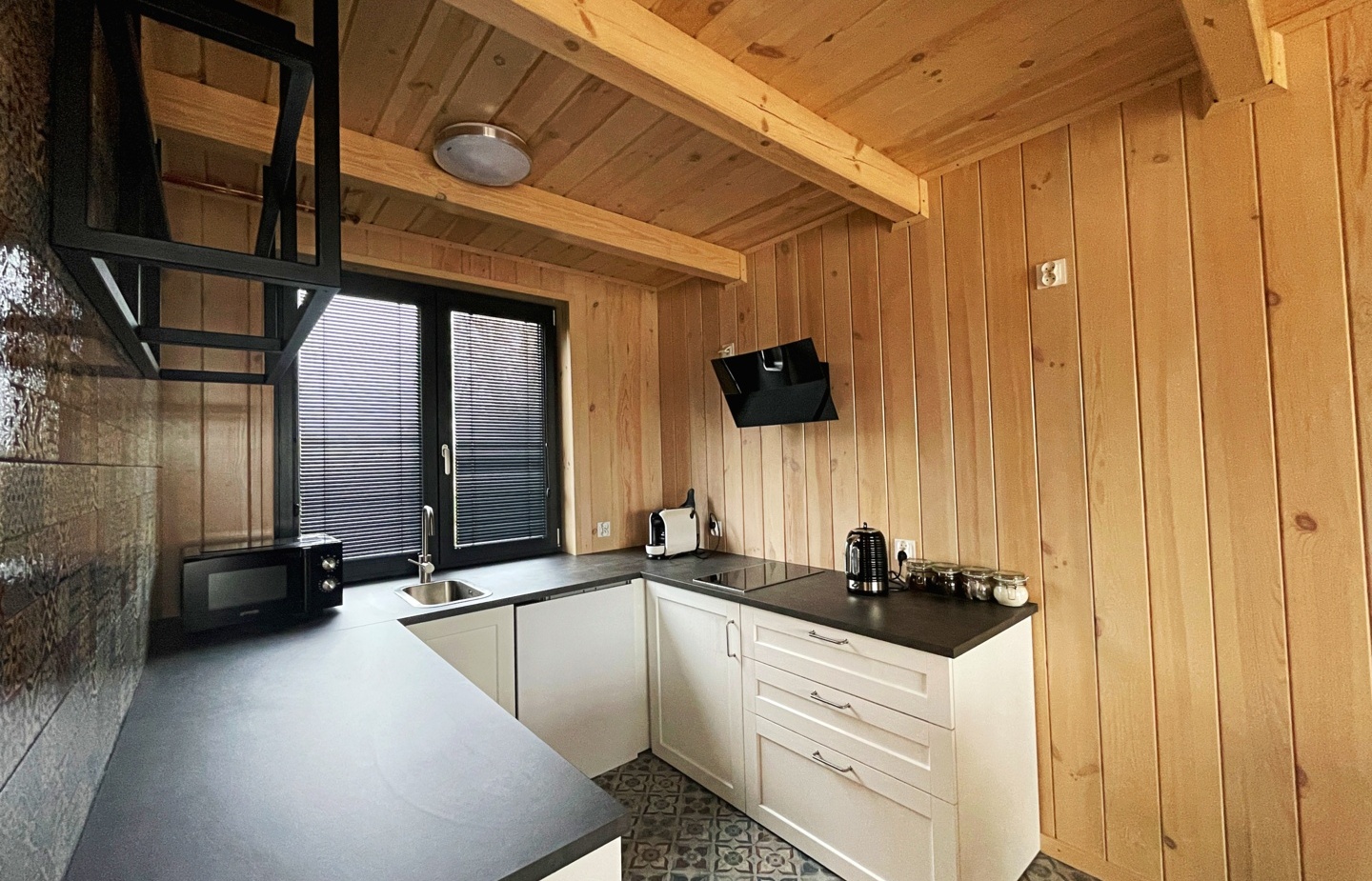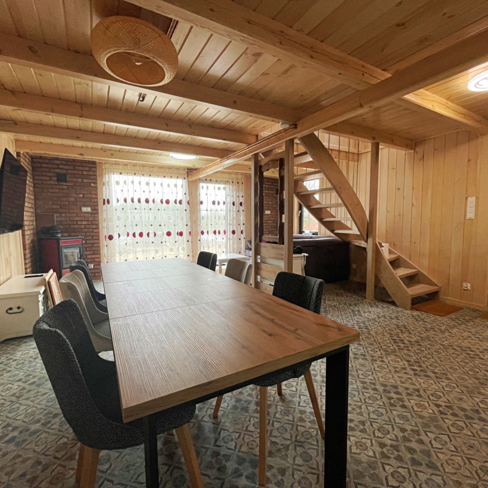Domek został wykonany z solidnego drewna, co nadaje mu rustykalny urok, jednocześnie zapewniając komfortowe warunki pobytu. Wnętrze zostało nowocześnie urządzone, aby zapewnić naszym Gościom wygodę i przyjemność podczas całego wypoczynku. Znajdą tu Państwo w pełni wyposażoną kuchnię, przytulny salon z kominkiem i kanapą, łazienkę oraz trzy sypialnie, w których mogą Państwo wypocząć po dniu pełnym atrakcji. Oferujemy również miejsce na rozpalenie ogniska.