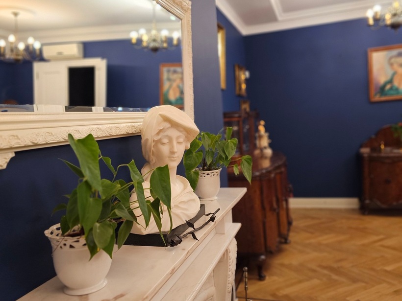 to klimatyczna sala z kominkiem, urządzona w klasycznym stylu. Posiada oddzielny taras z widokiem na park i stawy.