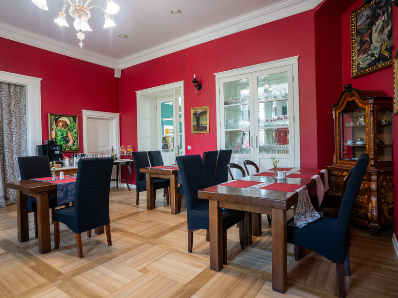 z czerwonym kolorem ścian, przypadnie do gustu szczególnie Paniom. Może też być doskonałym wyborem na romantyczną kolację.